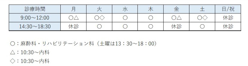 | 休診日 | 日曜・祝祭日・月曜午後・金曜午後 |