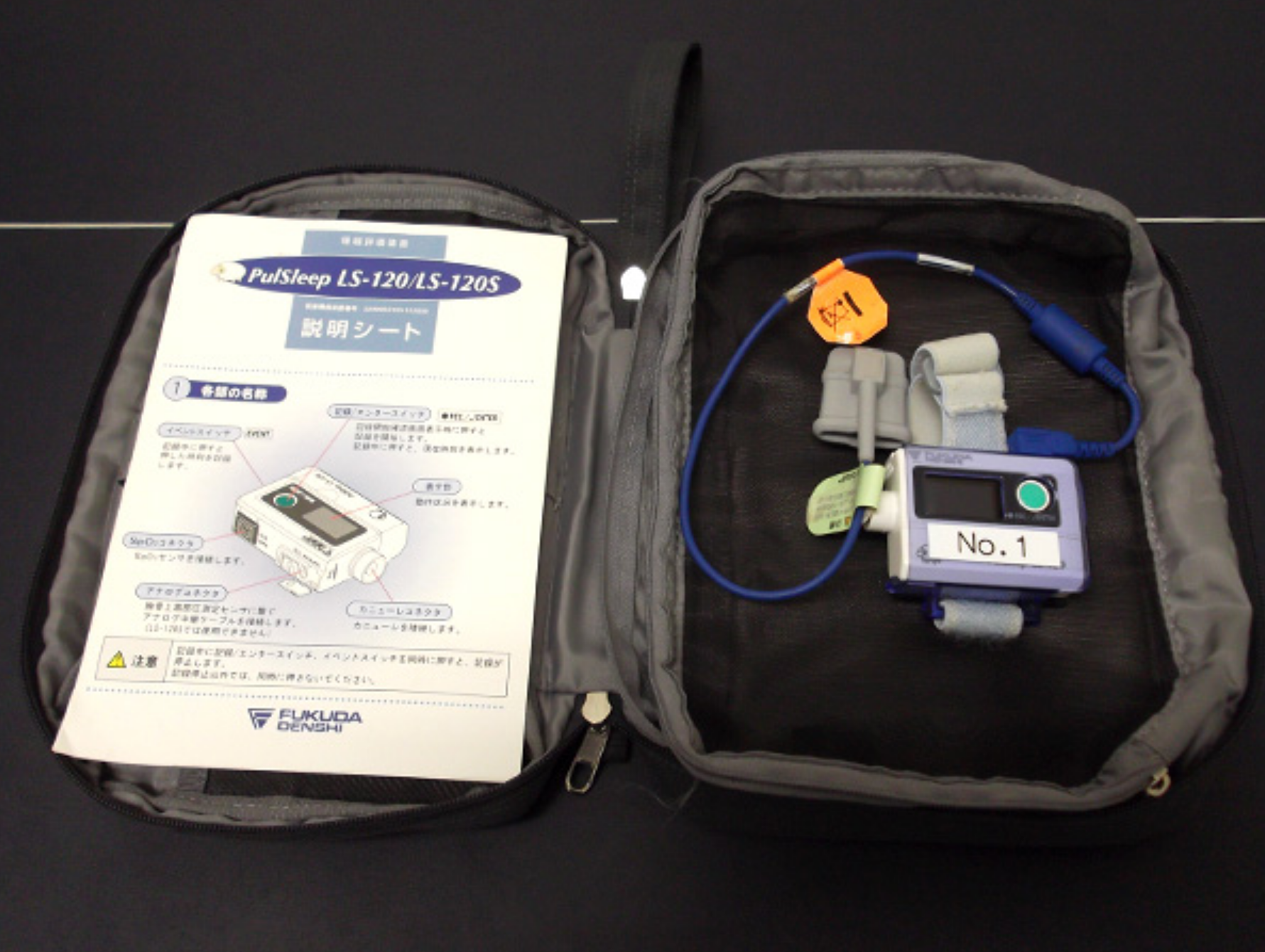 無呼吸症候群の恐れのある患者様の無呼吸の回数を検査する機器です。(貸出可)