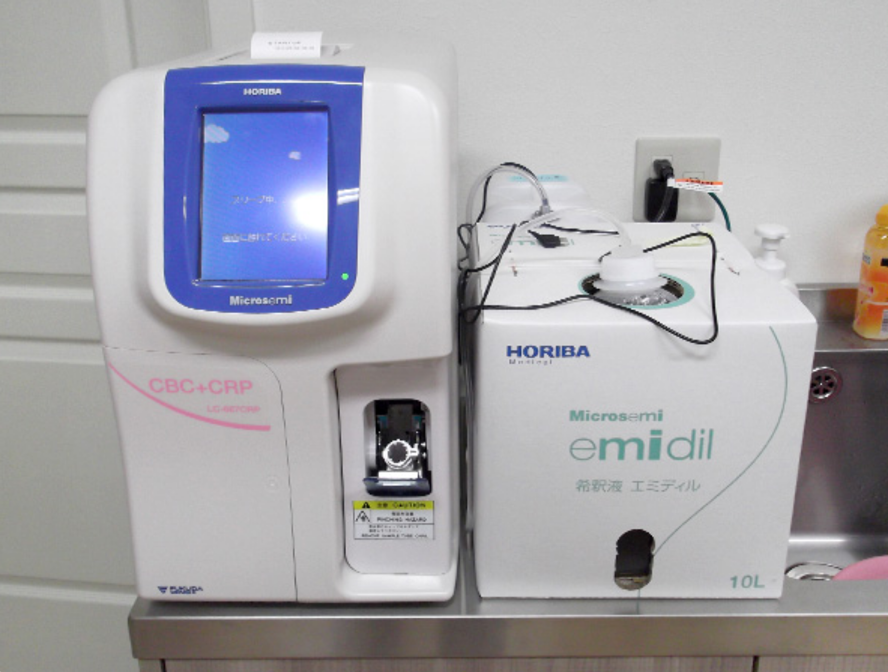 血液検査器。血算18項目とCRP定量を測定します。