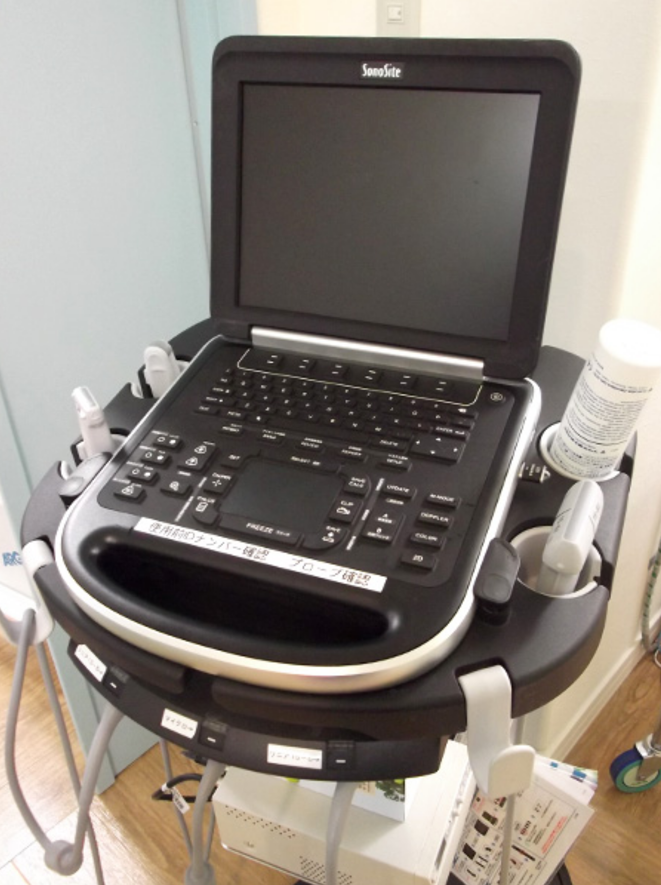超音波で体内の映像を写し出し処置していく機器です。小型なので診察室などにも移動できます。