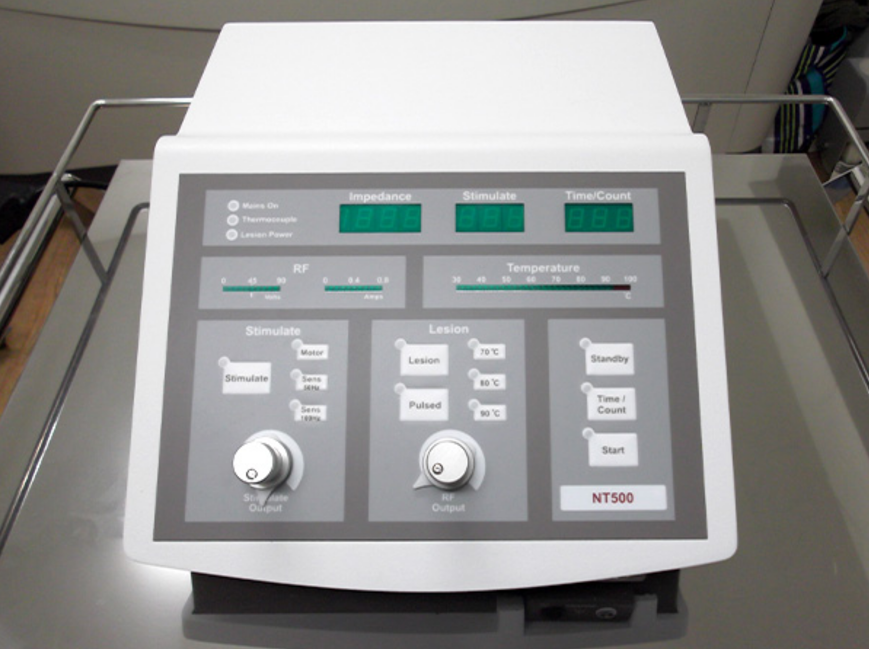 神経ブロック処置の際に使用。針で痛みの感じる部分を一時的に焼き痛みを感じにくくするための装置です。